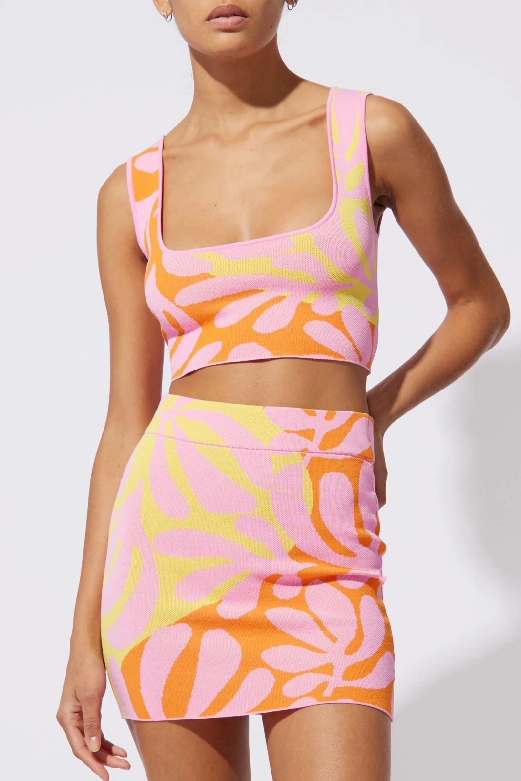 Cropped with a square neckline and thick tank straps, the Kimberly Top is an easy staple this Spring. Pair with the mini Kimberly Top for a playful co-ord.
